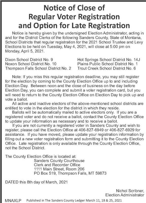 NOTICE OF CLOSE OF REGULAR VOTER REGISTRATION